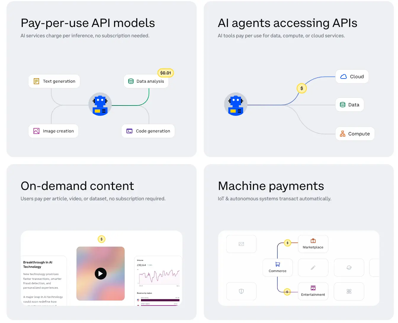 - AI agents that autonomously pay for API access