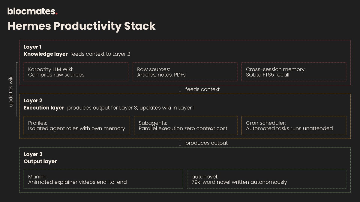 The first layer of this new productivity stack, powered by Hermes, doesn’t actually begin with the Nous Research team; it begins with Andrej Karpathy.