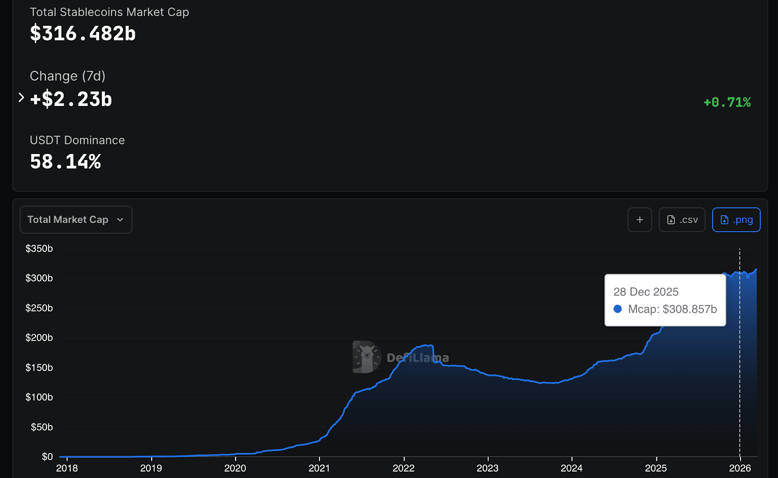 Stablecoin growth has been rapid through the windfall in token prices across the board. The total stablecoin market cap crossed $308 billion in 2025. Annual transaction volume hit an estimated $46 trillion, depending on who you ask. That’s more than 20x PayPal’s volume and closing in on Visa.