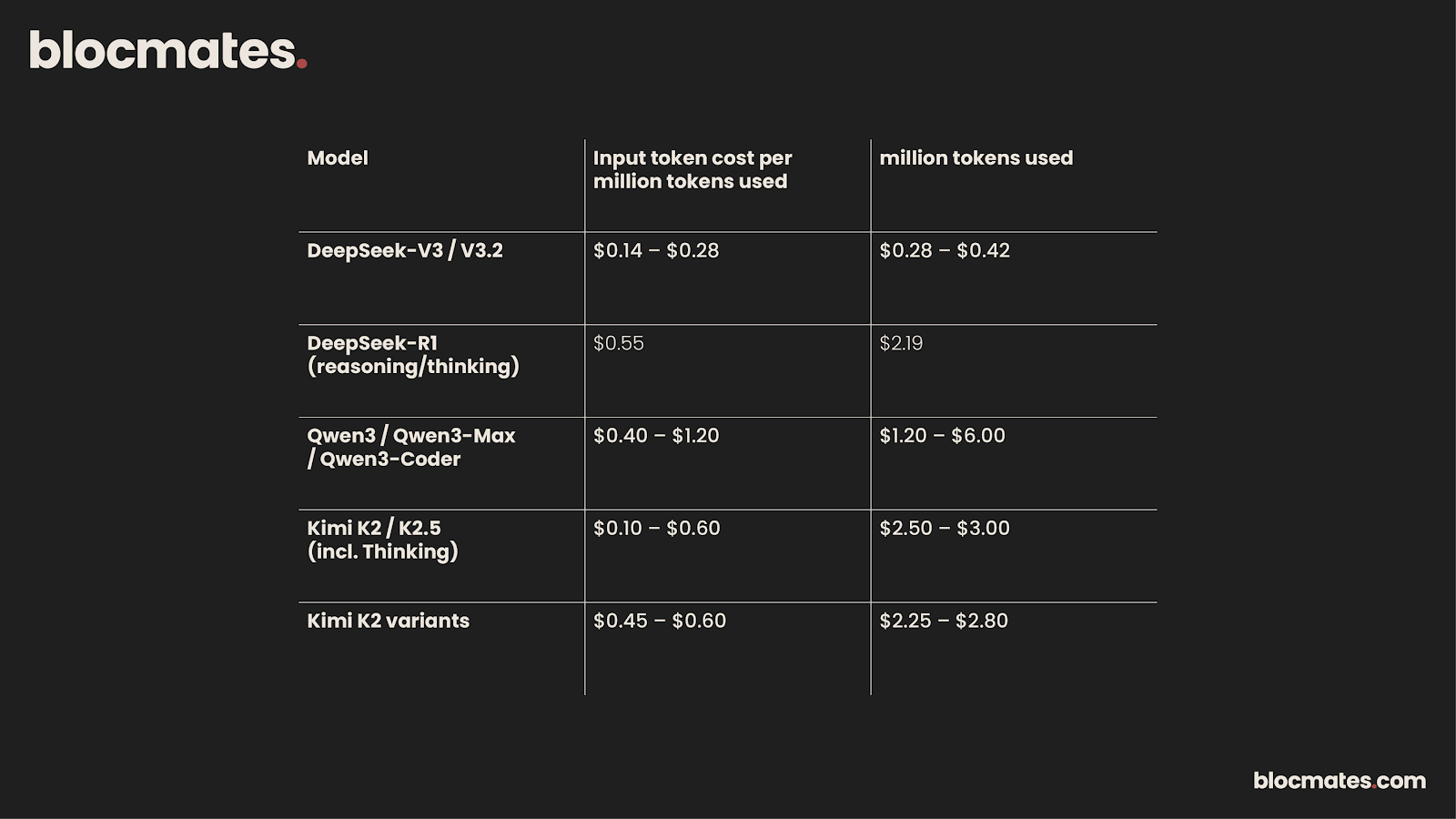 Let’s also look at the costs for open-weight models per million tokens for hosted APIs.