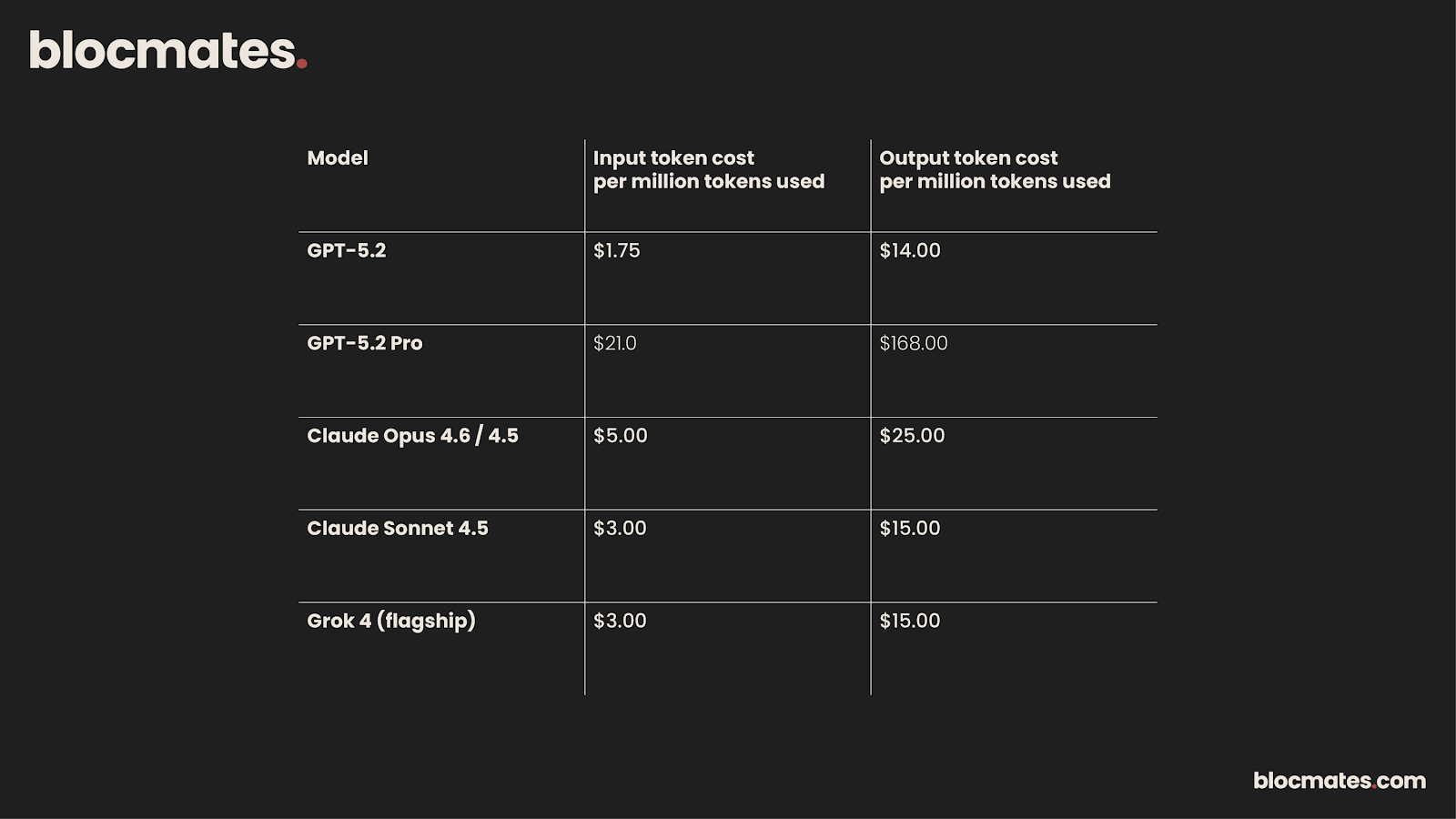 For perspective, let’s look at what the top models charge per million tokens as of February 2026.