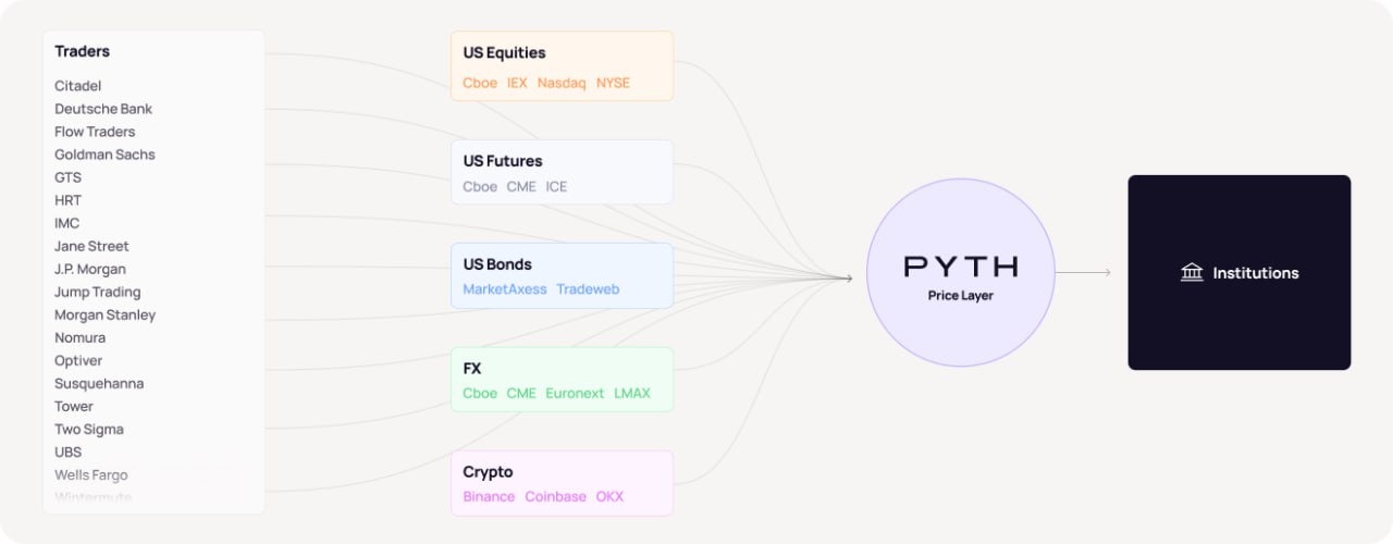 Today, PYTH provides over 2,500 price feeds to more than 100 chains across 11 asset classes, including crypto, equities, commodities, prediction markets, FX, and others, with an update frequency of up to 1ms.