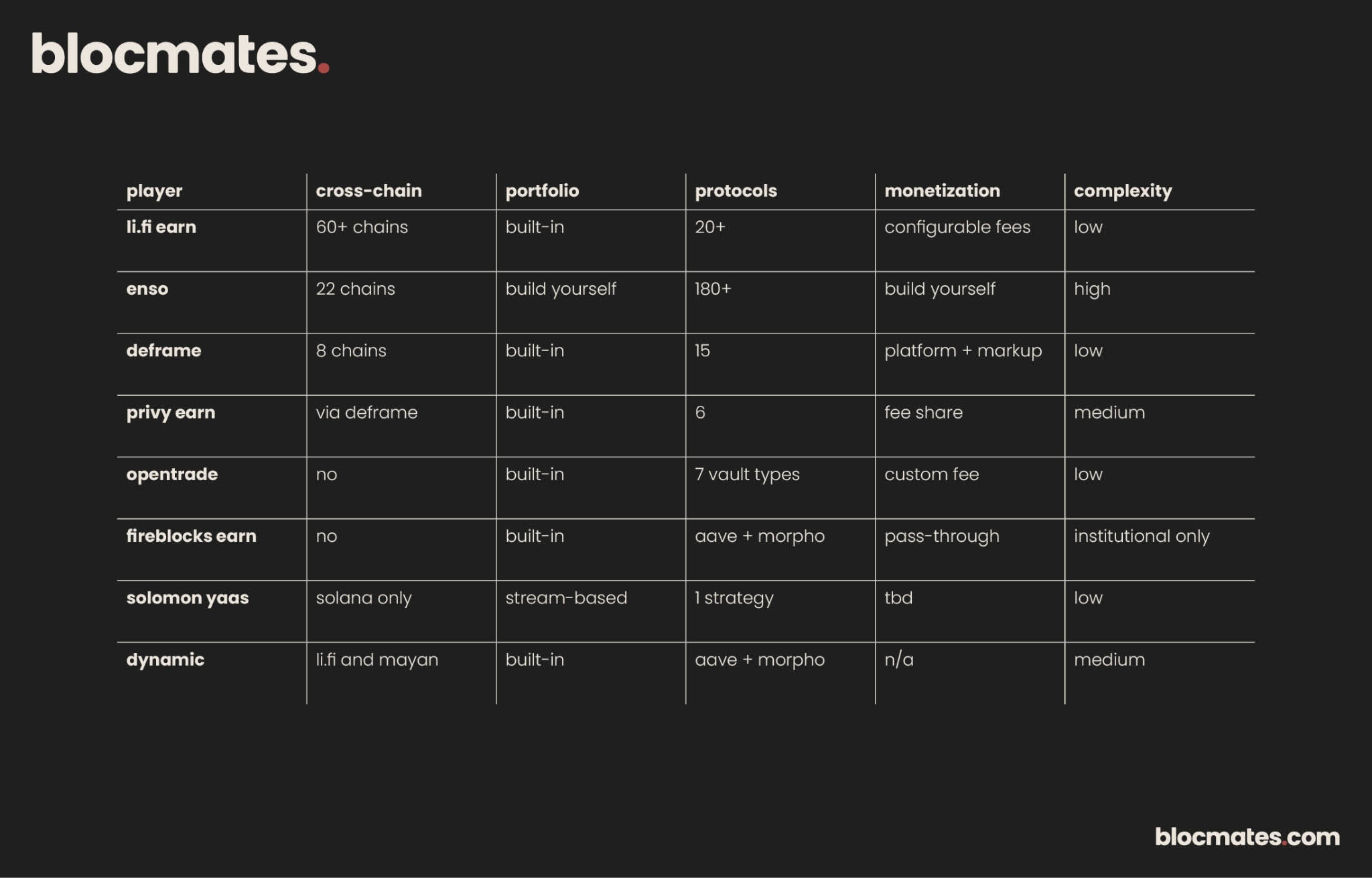 For example, Privy Earn is a natural “upsell” for developers already on Privy's wallet infrastructure. The same is true for Fireblocks Earn and Dynamic, but on the institutional side.