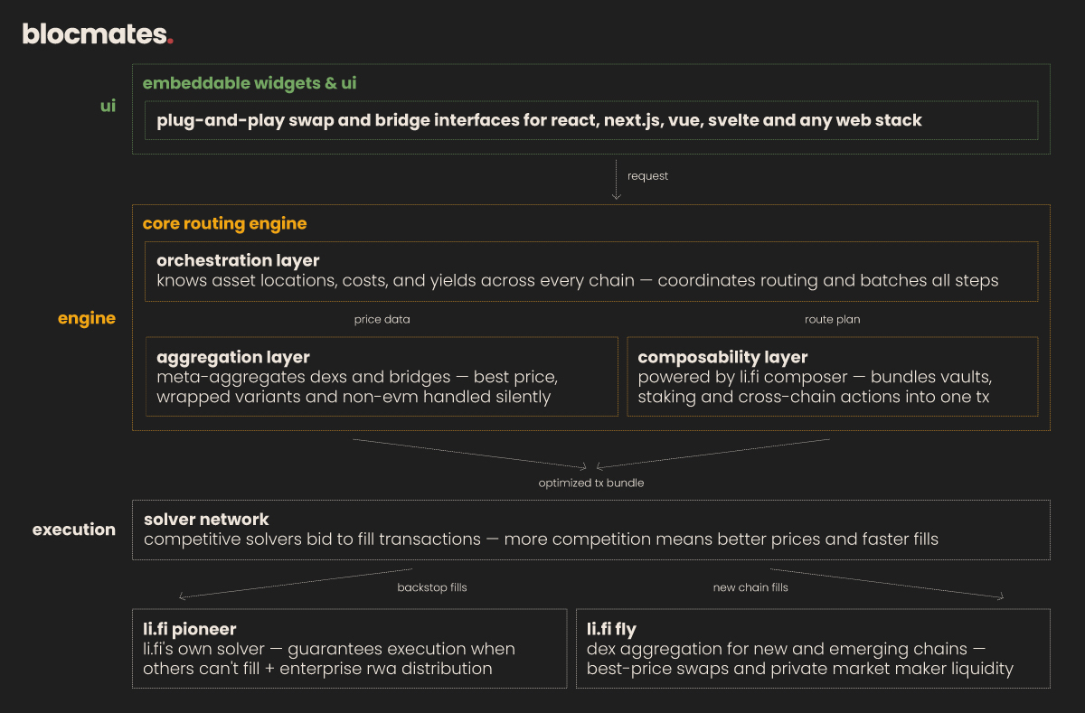 In case you’ve been living under a rock, perhaps too preoccupied with bridging and swapping tokens separately, LI.FI is an infrastructure provider that handles routing and execution for apps, granting them access to all onchain liquidity across chains, bridges, DEXs, solvers, and yield protocols.