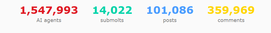 This post suggests that there’s no rate limiting on account creation. So, although the stats are impressive, the reality could be that it’s just a handful of agents creating multiple accounts and posting, which again hampers the platform's credibility.