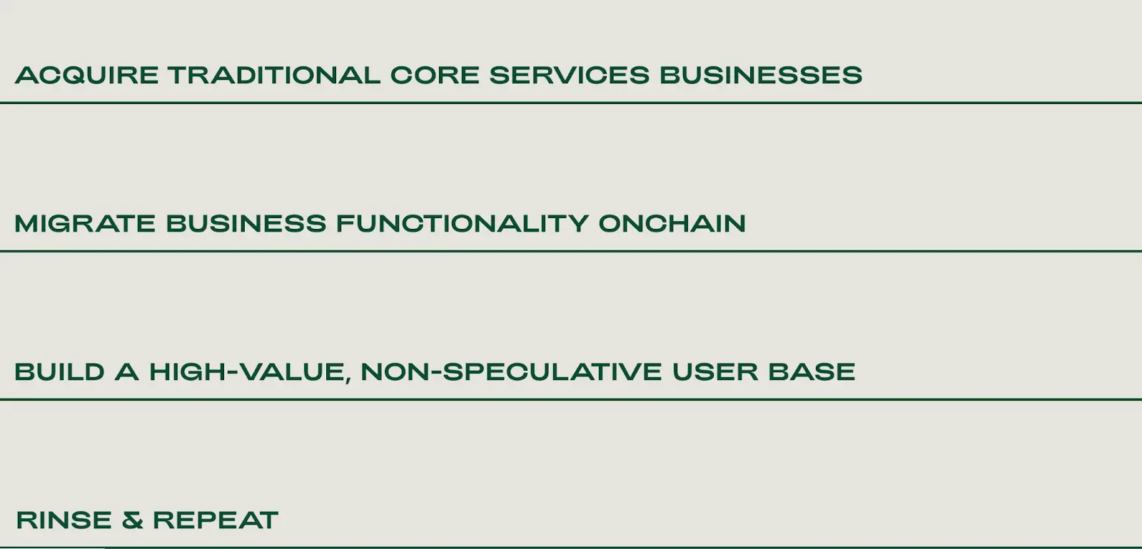By focusing on acquisitions and investments in real offchain industries, this approach naturally creates demand for better tooling and integrated infrastructure.
