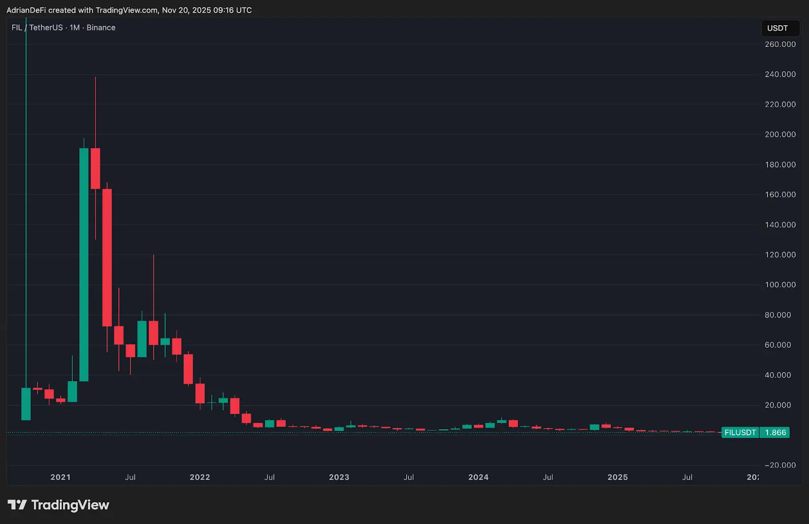 Filecoin is just one prominent example of a project with a huge amount of existing tokens with down-only price action.
