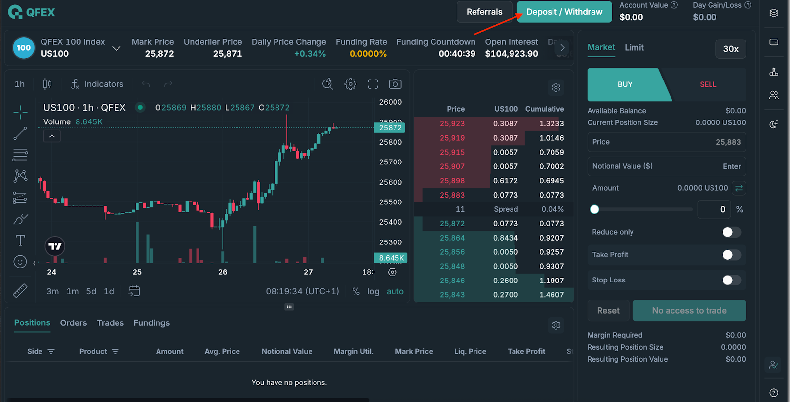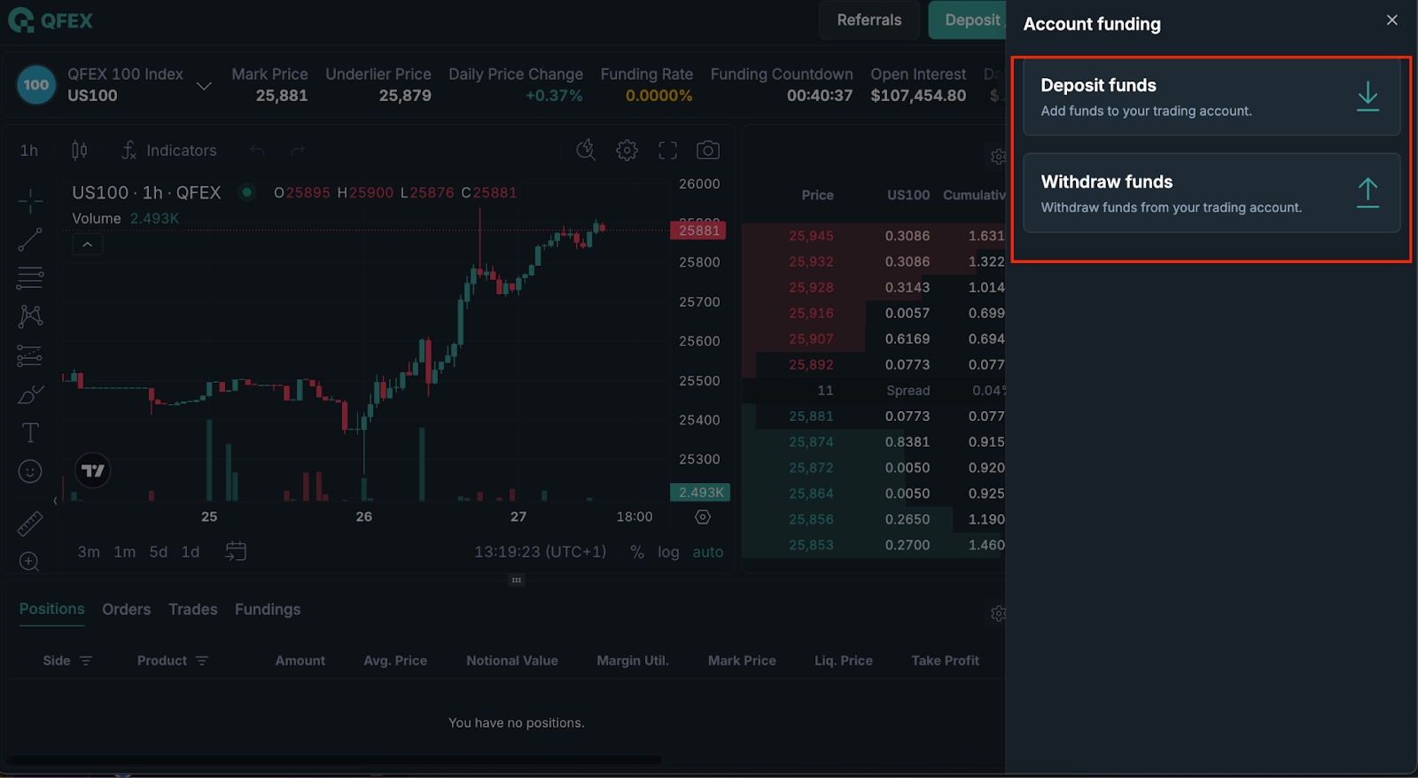 - QFEX also has a referral feature, allowing users to earn referral fees from their invites.
