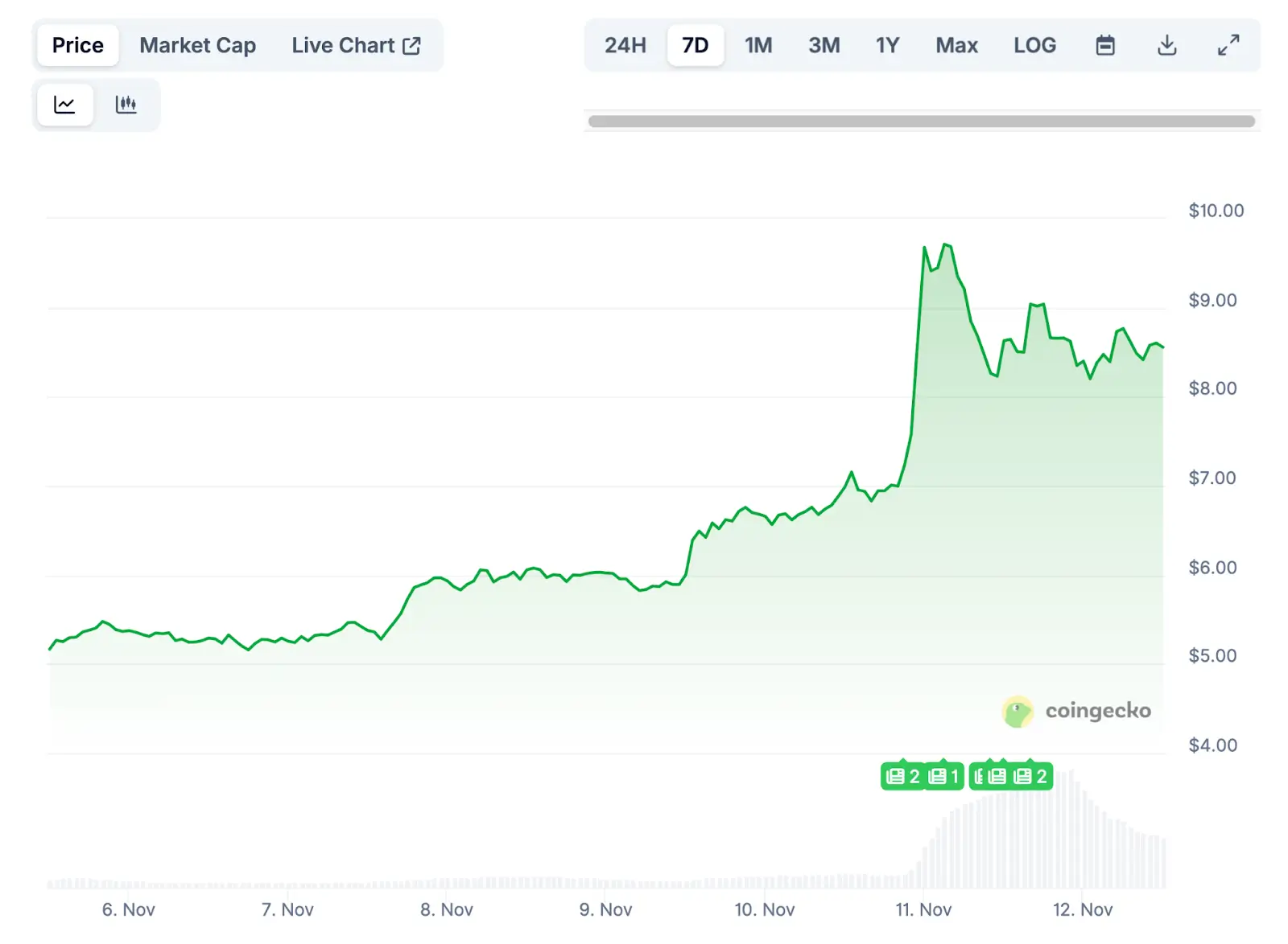 A little context: UNI’s price has increased by over 60% in the past week as its price currently trades at a price above $8.5.